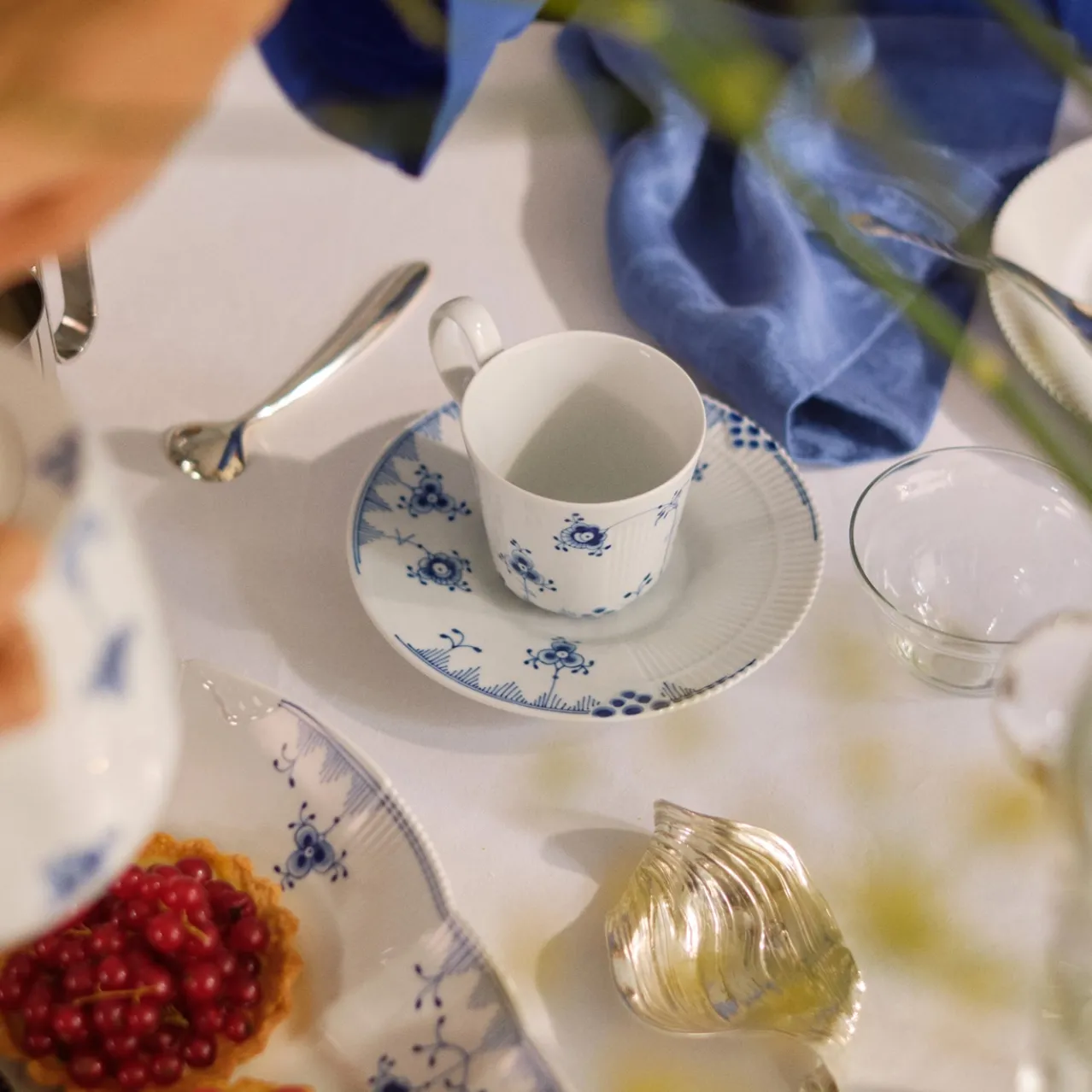 Proposed as The Royal Danish Porcelain Factory trademark in 1775 by Queen dowager Juliane Marie, every piece of Royal Copenhagen porcelain is instantly recognised by the three blue waves on its underside symbolising the Sound, the Great Belt and the Little Belt – the three main waterways of Denmark.