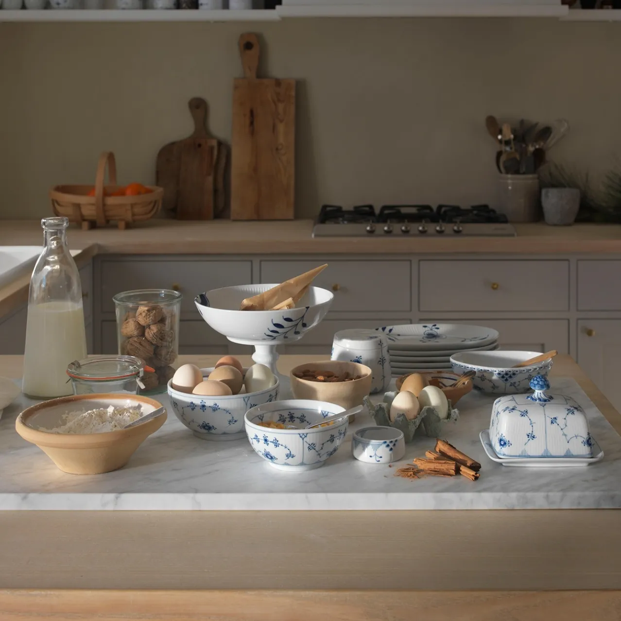 Your butter has never been presented more beautifully. This elegant butter dish in Blue Fluted Plain will elevate any table setting. The elegant, blue details frame the butter dish and the stylized, botanical element on the top is also a small handle. The saucer has a small edge to keep the butter and lid in place. Blue Fluted Plain captivates with its classic versatility and still today, the first ever Royal Copenhagen collection from 1775 remains forever in style. The graceful decoration of the collection emphasises the delicate form and craftsmanship of each piece. Use Blue Fluted Plain as the basis for a unique collection of Royal Copenhagen porcelain, combining the classic with the contemporary.