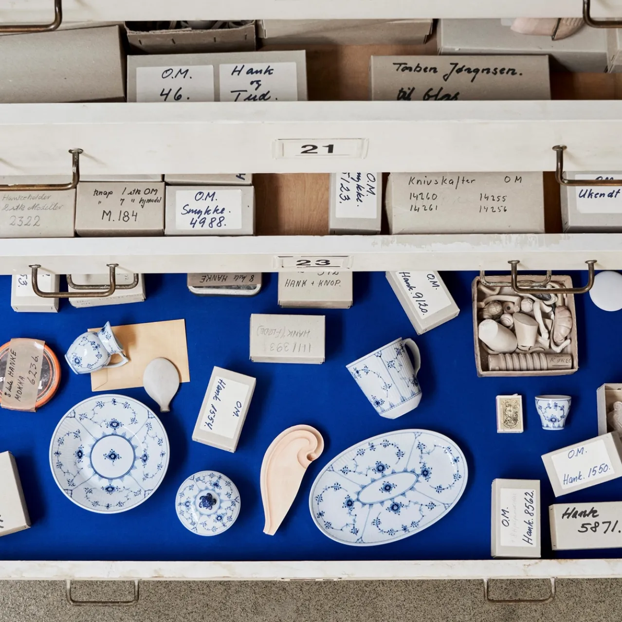 Proposed as The Royal Danish Porcelain Factory trademark in 1775 by Queen dowager Juliane Marie, every piece of Royal Copenhagen porcelain is instantly recognised by the three blue waves on its underside symbolising the Sound, the Great Belt and the Little Belt – the three main waterways of Denmark.