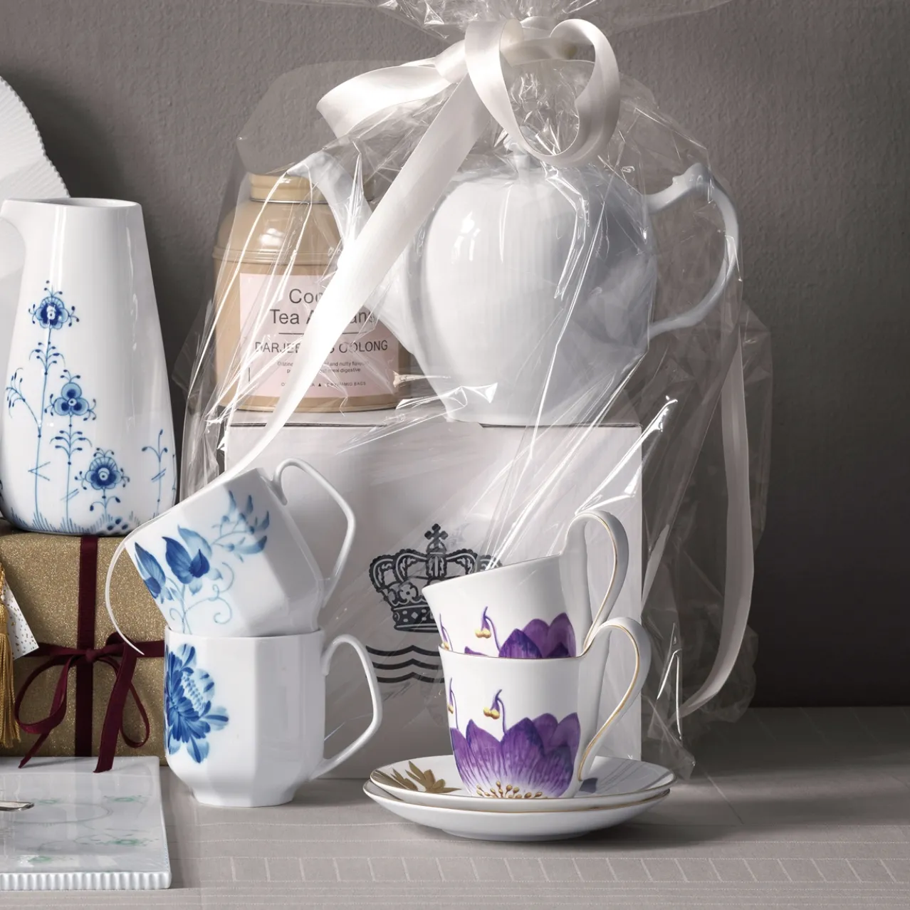 Adorned by a gracious pansy, this 27 cl Flora High Handle Cup and Saucer appears with a deep purple hue and enlarged stamens seemingly swaying in a gentle breeze. The gold details of the pieces are complimented by the leaves of the stem, which are kept in an umber colour scale. Flowers have long been a means of communication across time and cultures. From the Victorian art of floriography to the Japanese flower language of hanakotoba, beautiful flowers can communicate your emotions and sentiments in the most expressive way. Each flower has its own name and meaning and in Flora they each get to shine in all their glory. A collection filled with life.