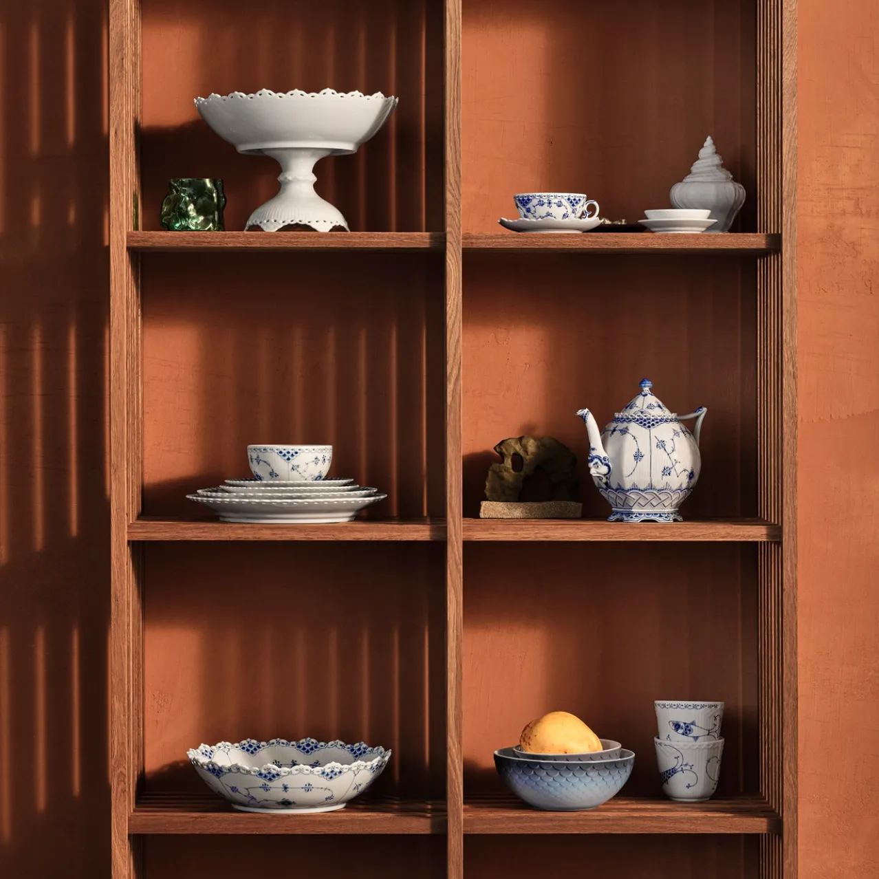 Proposed as The Royal Danish Porcelain Factory trademark in 1775 by Queen dowager Juliane Marie, every piece of Royal Copenhagen porcelain is instantly recognised by the three blue waves on its underside symbolising the Sound, the Great Belt and the Little Belt – the three main waterways of Denmark.