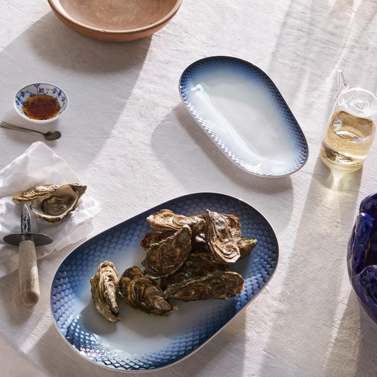 The small HAV Serving Dish bears resemblance of the blue mussels that can be found along the coasts of Denmark. The striking colour grading evolves across the fish scales from the darkest to lightest shade of blue. Ideal for serving sweet and savoury snacks.