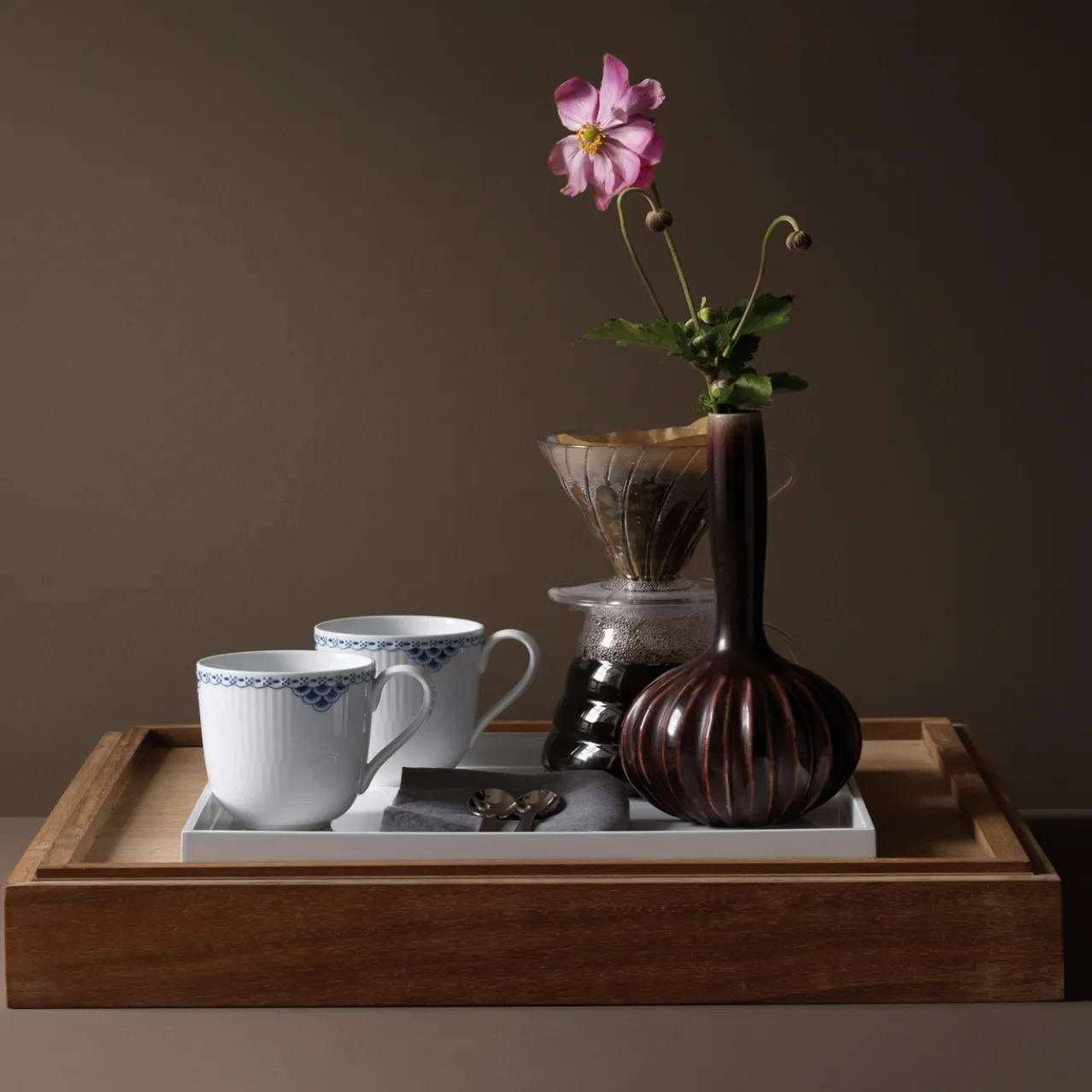 The two 37 cl Princess Mugs lend a contemporary aesthetic to the Princess collection and are designed to be timeless favourites that easily combine with other pieces from Royal Copenhagen. The mugs are hand painted with a romantic, blue lace border and invites to loving moments for two. The delicate Princess collection epitomises classic femininity. Every piece in the collection is encircled by a fine, hand painted lace border and decorated with fish scale decorations and handmade flutes. The elegance of the collection adds a touch of old-worldly beauty to any scene.