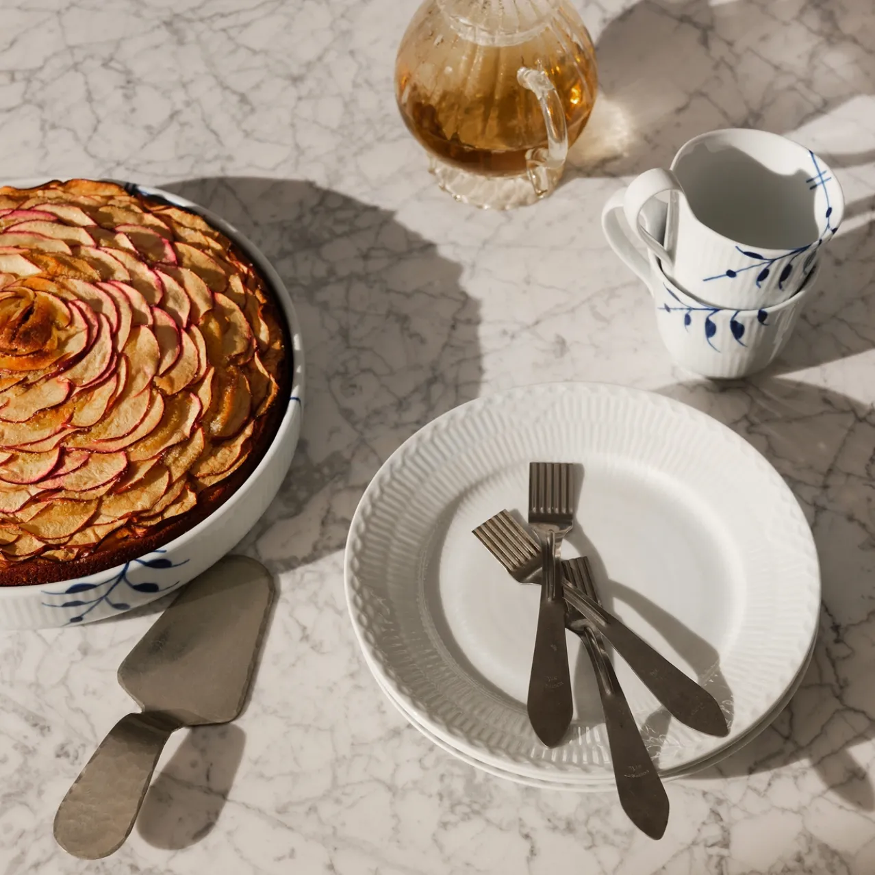 This 19 cm White Fluted Half Lace Plate has a wide rim on which an elegant, handmade lace and clusters of fish scales follow the round shape. The classic porcelain plate is perfect as a lunch plate or as a small serving dish. The unpainted porcelain of White Fluted Half Lace allows the Royal Copenhagen craftsmanship to take centre stage. Each piece is glazed by hand and adorned with a romantic lace border. White Fluted Half Lace is a timelessly beautiful collection to combine with the hand painted dinner services of Royal Copenhagen.
